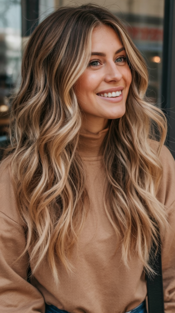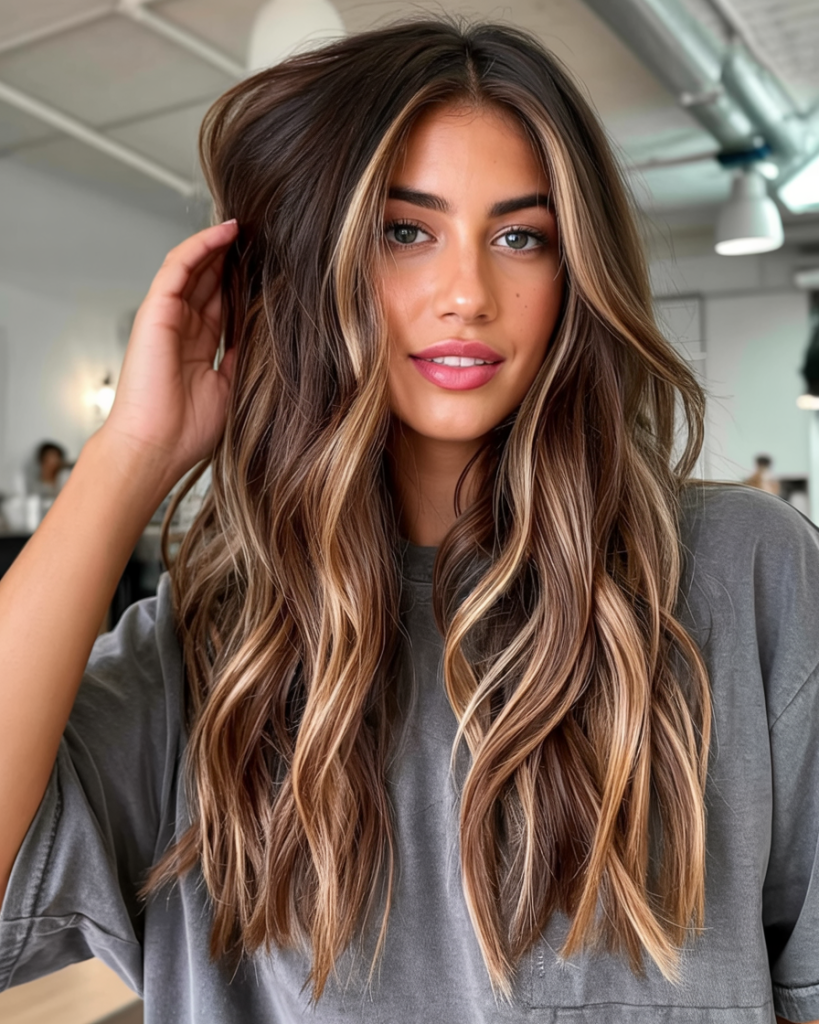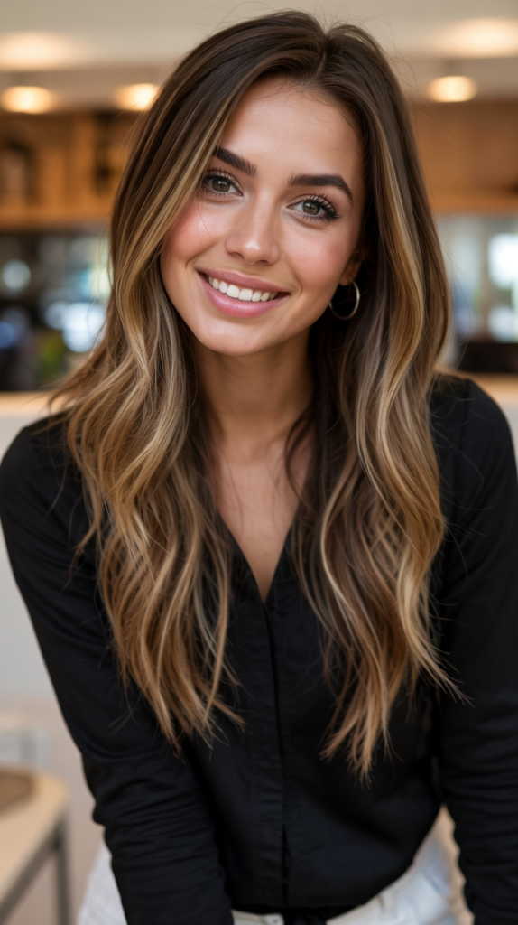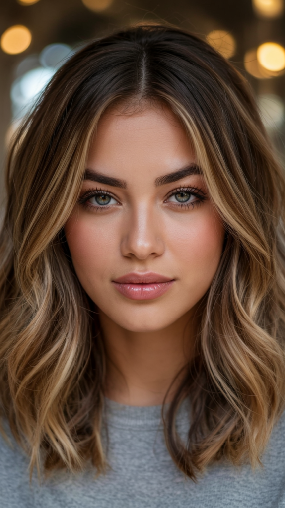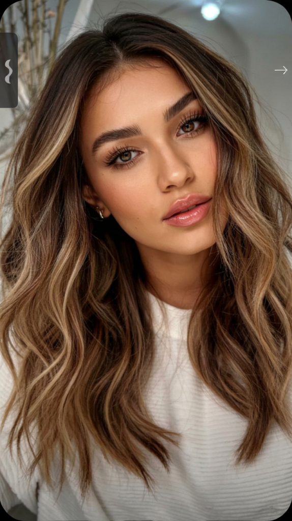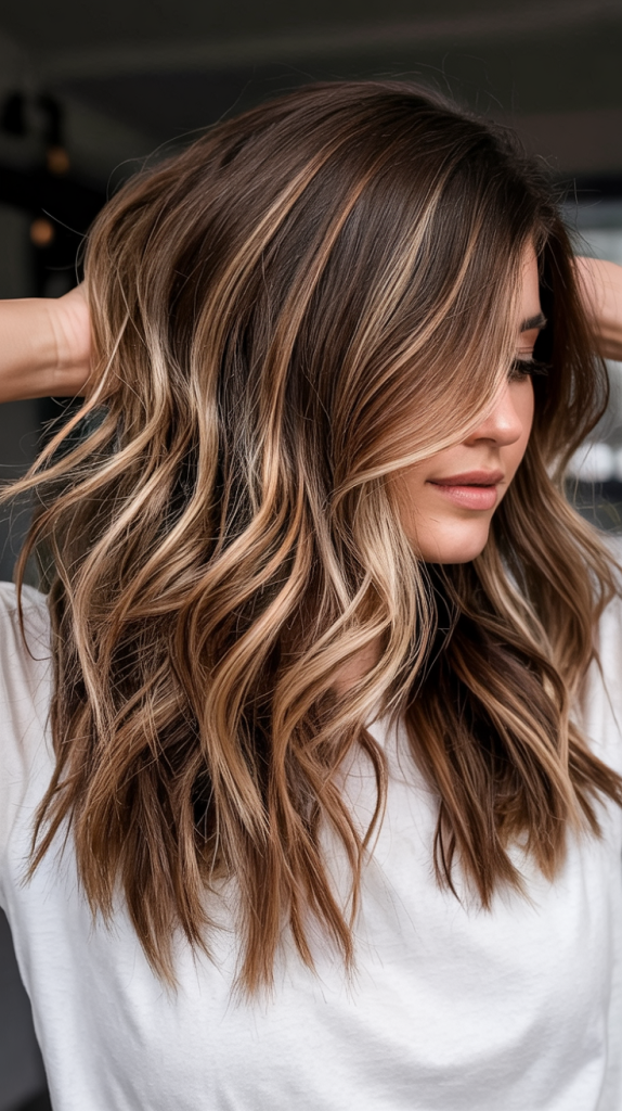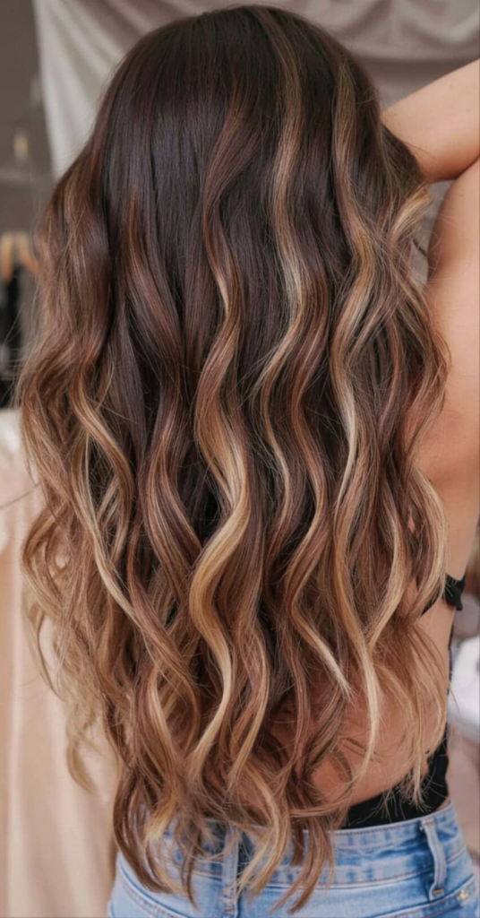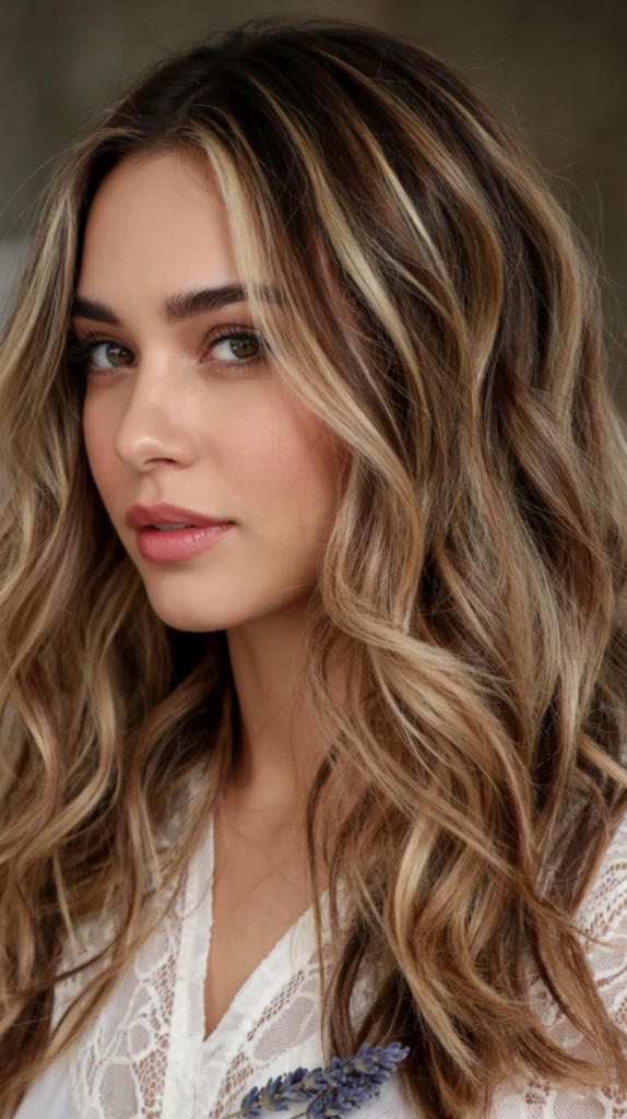 The style is suitable to long to medium length with some natural wave or body. It’s low-fuss to maintain—just touch up your highlights every few months. This is the one to use to brighten up without the total bleach put in the Caramel color trends in the year 2025.