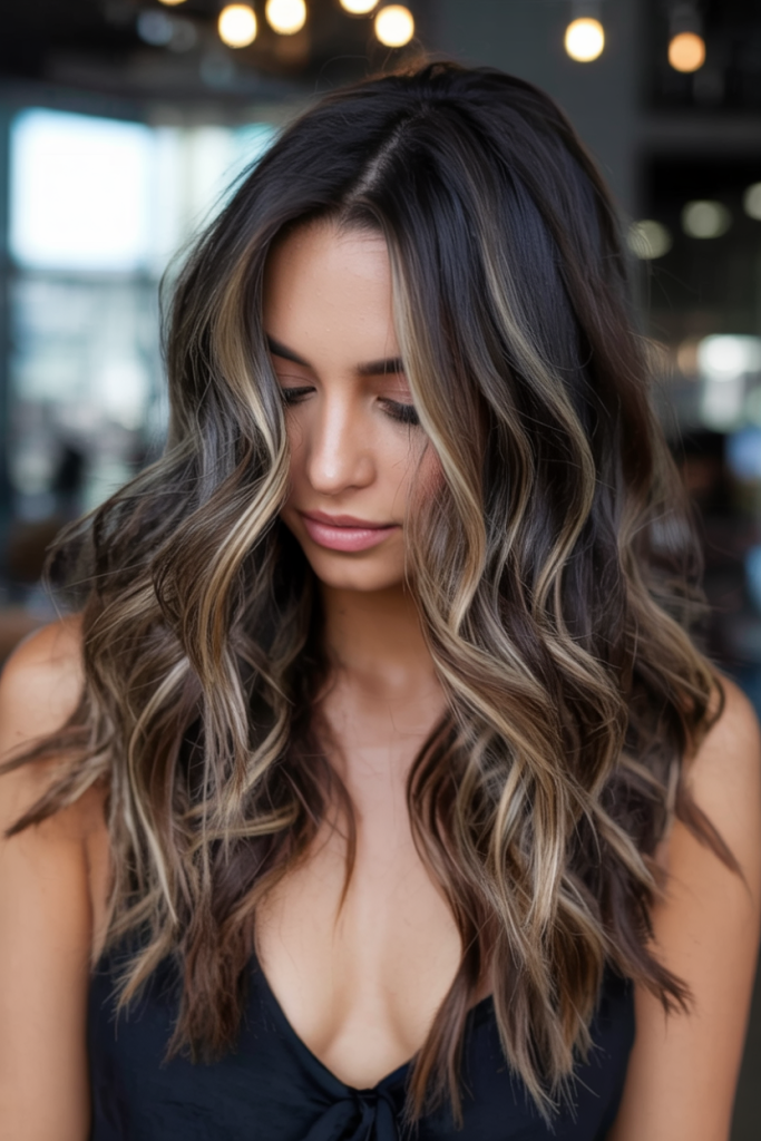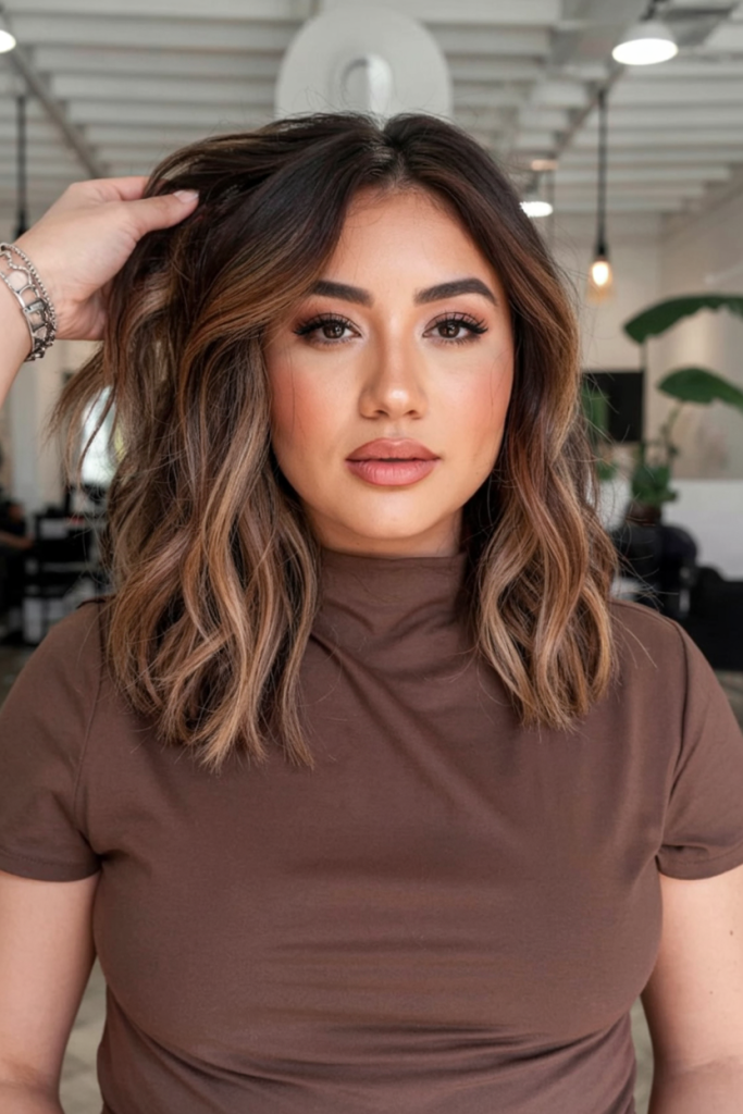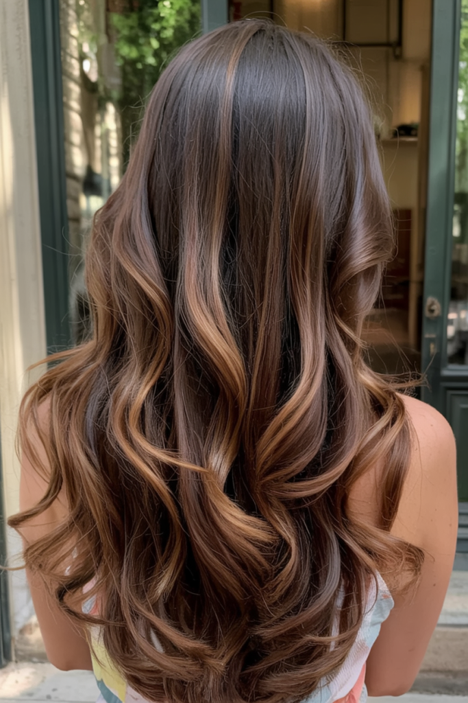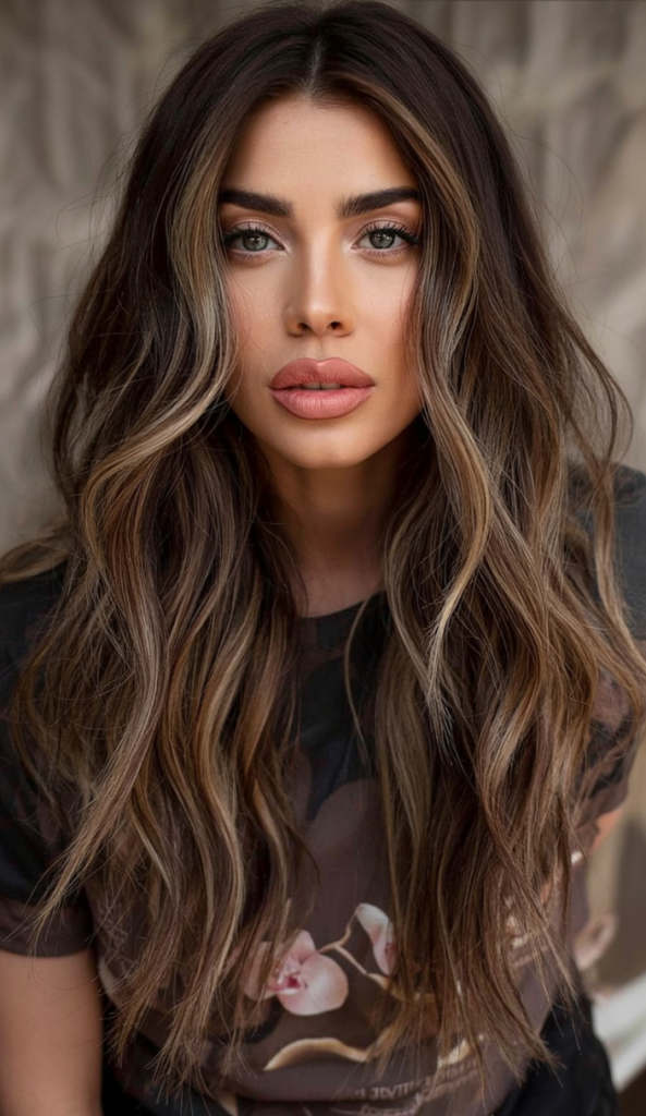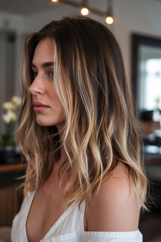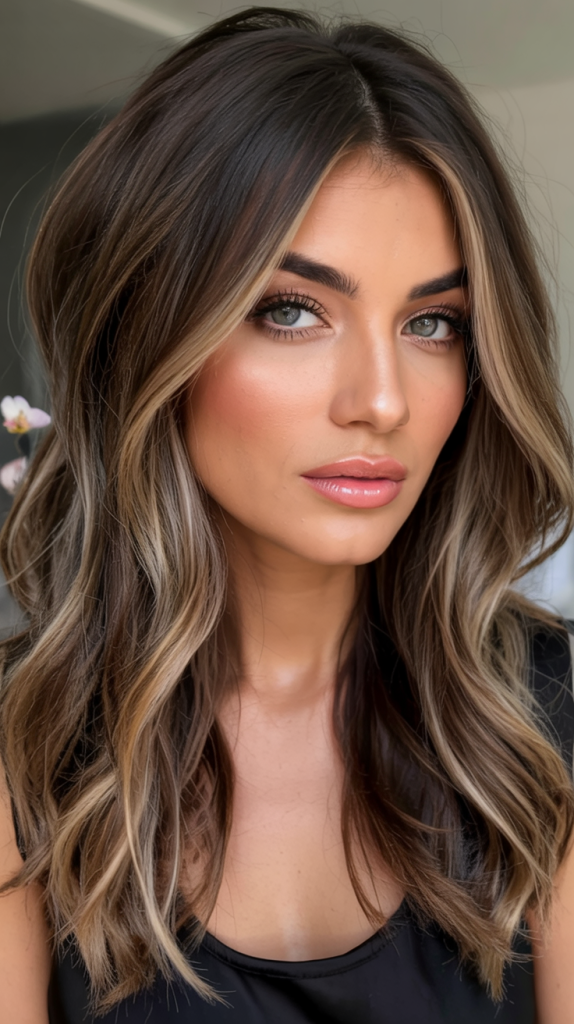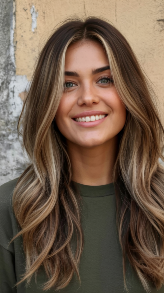 The style is suitable to long to medium length with some natural wave or body. It’s low-fuss to maintain—just touch up your highlights every few months. This is the one to use to brighten up without the total bleach put in the Caramel color trends in the year 2025.