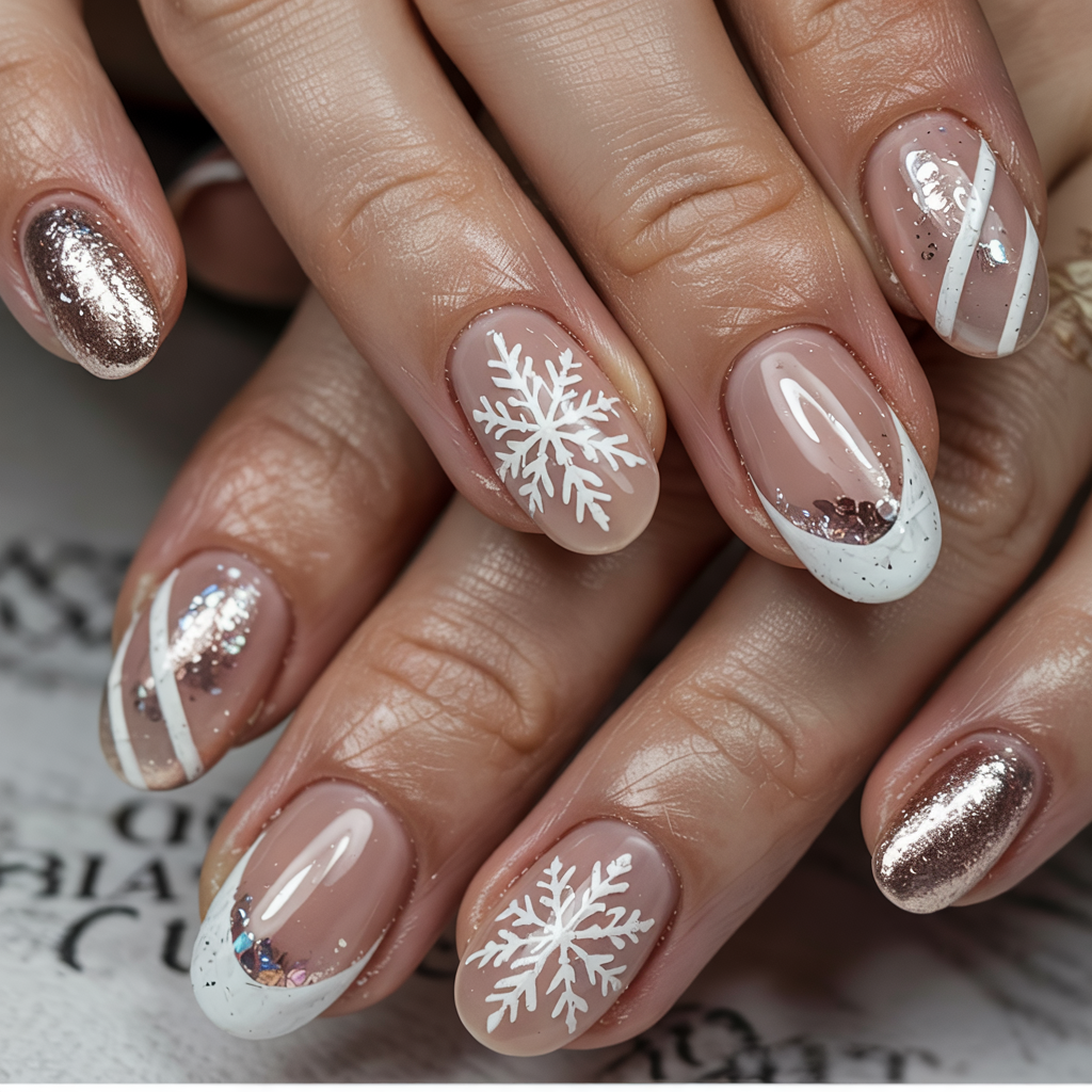 1. Elegant Snowflake And Glitter Short Christmas Nails 2025