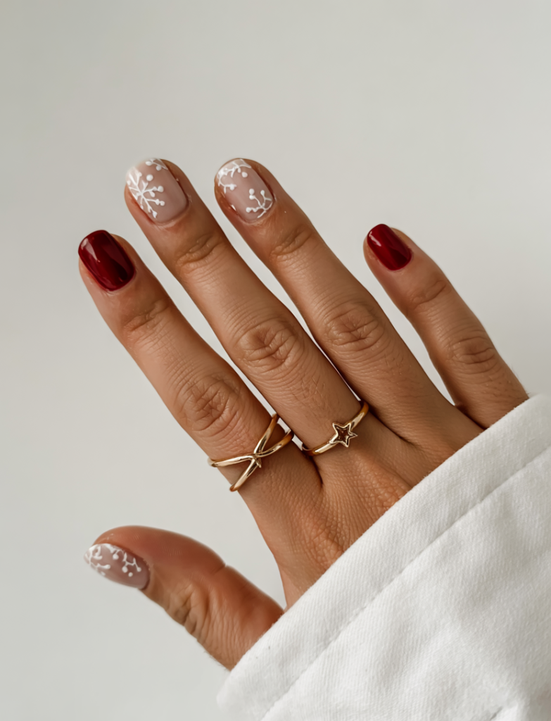 12. Minimal Red And White Snowflake Short Nail Designs 2025