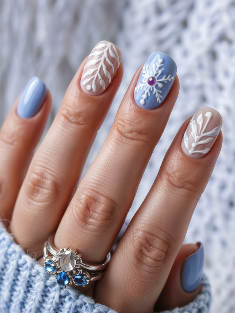 20. Frosty Blue Snowflake Short Christmas Nails 2025