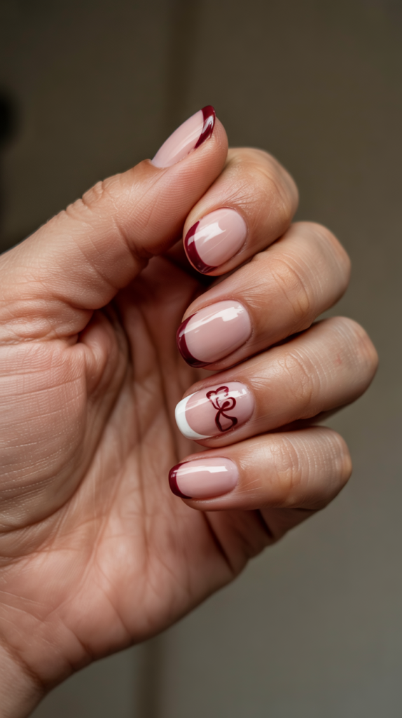 23. Minimal Burgundy French Short Christmas Nails 2025