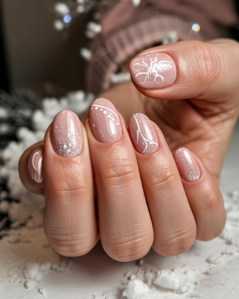 6. Soft Pink Snowfall Short Christmas Nail Designs 2025