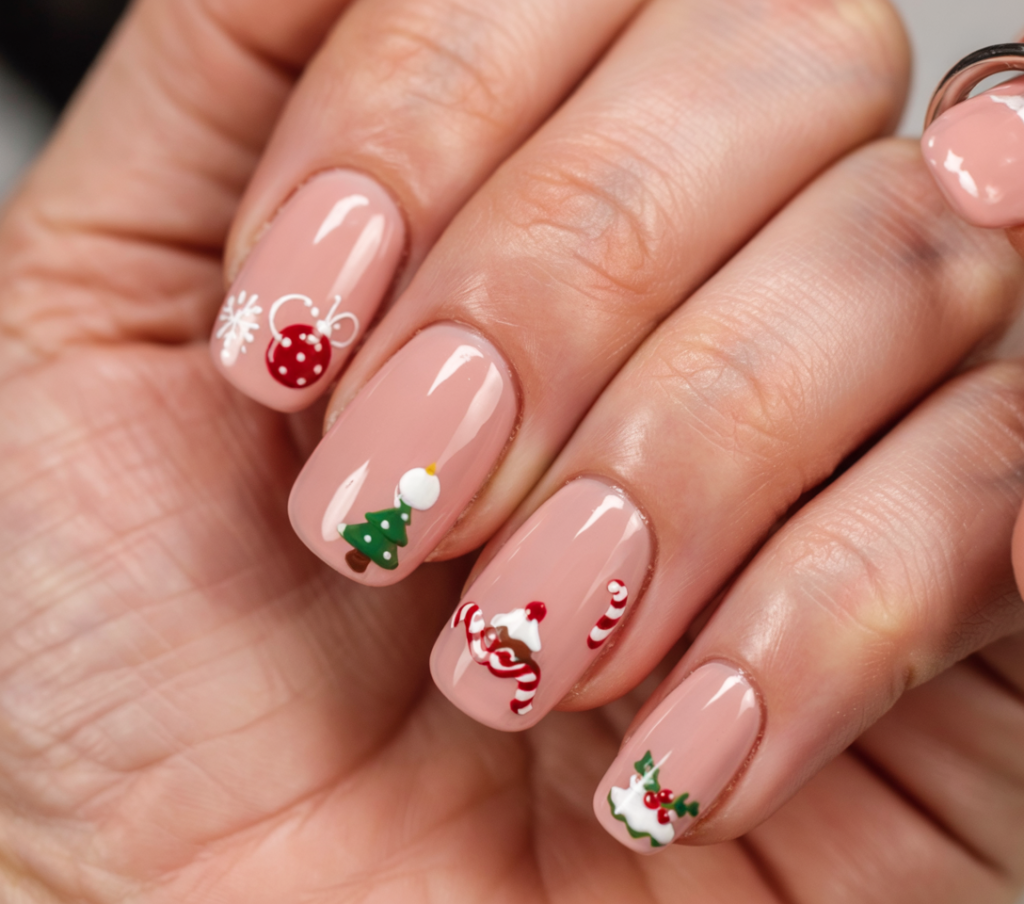 It’s a fantastic choice for short square nails and works beautifully with gel polish. The small, precise art makes it feel like a mini collection of Christmas designs 2025. If you love cute and detailed nail art, this idea gives you endless ways to personalize.