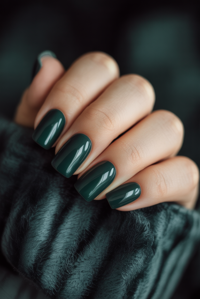 Short square nails are easy to keep and fit in almost every kind of lifestyle, therefore perfect now for those hurried holidays. Dark green, being bold, yet classy, can partner beautifully with those rich and cozy textures that have been the hallmark of winter since time began-anything from velvet to woolred-green. The idea is minimal and yet it never goes out of style.