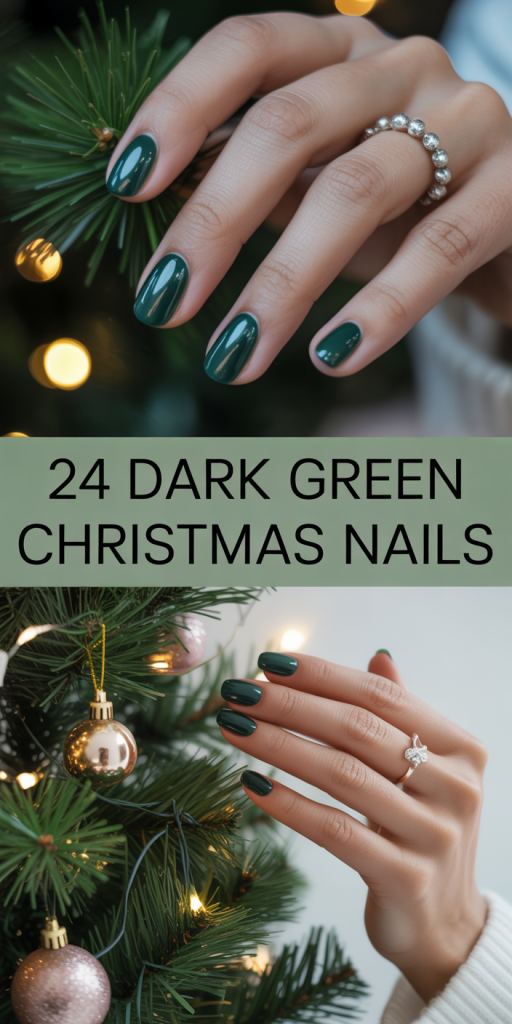 24 Dark Green Christmas Nails Ideas for Stylish Holiday Looks