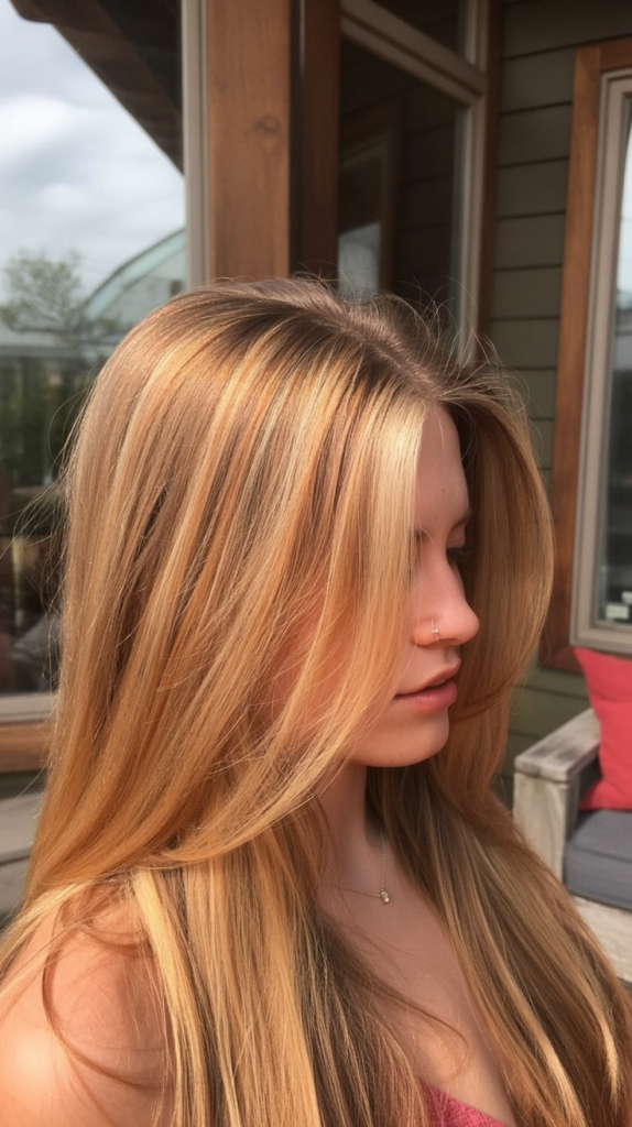 8. Sleek Warm Strawberry Blonde with Money Pieces