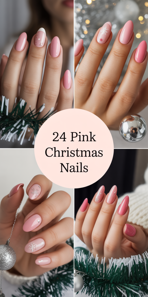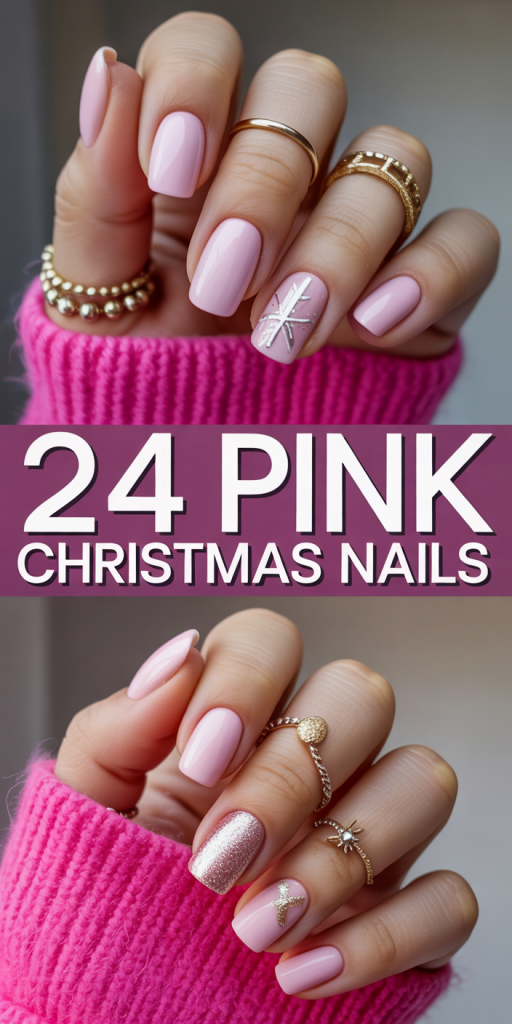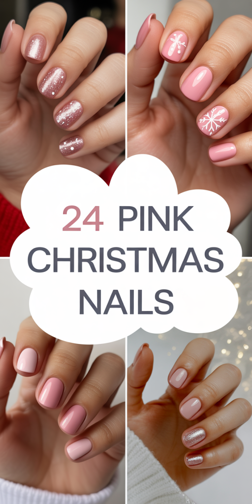 20. Elegant Pink Christmas Nails with Snowflake Accents