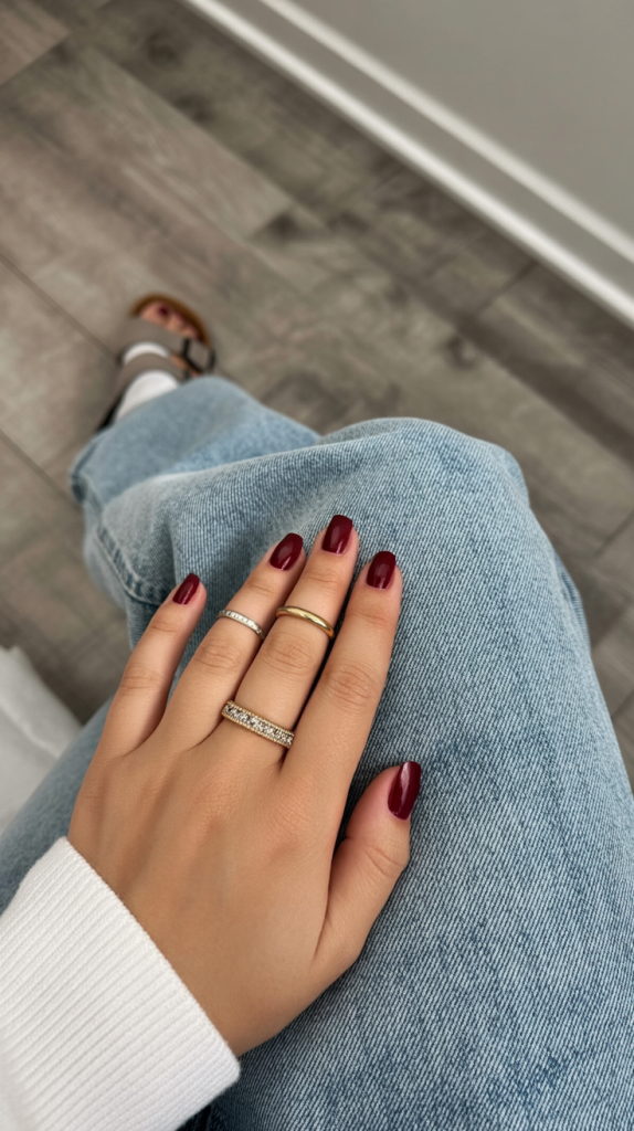 This set is an excellent option for women who love a statement nail that doesn’t require extra art. Short square shapes keep it modern, while the deep red color pairs effortlessly with jeans, dresses, or holiday looks. It’s one of those easy designs that makes you feel instantly put together.