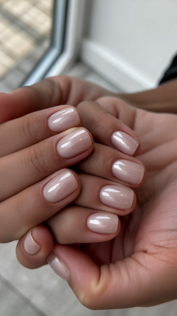 Short, glossy beige nails have a quiet elegance that never goes out of style. This design is understated yet modern, giving your hands a healthy, polished glow. The soft neutral shade is both fresh and timeless, making it an easy choice for anyone who wants to look put together without trying too hard.