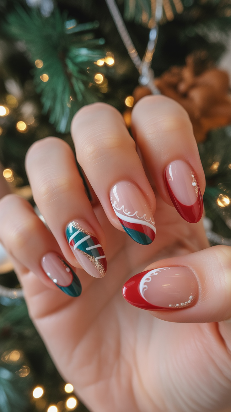 This set is a cute option for women who love mixing color with sparkle. The silver accent nail brings a touch of inspo from holiday lights, while the short length makes it super easy to maintain. It’s a fresh design that feels perfect for Christmas or any casual winter outing.