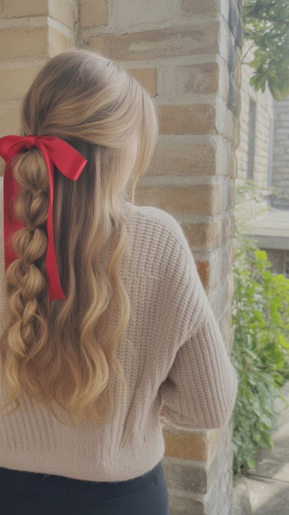 10. Pull-Through Braid with a Festive Bow