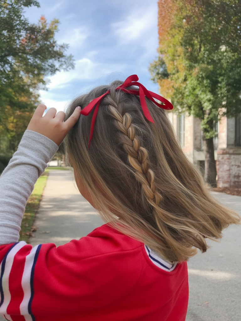12. Short Braid with Red Ribbons for a Festive Touch