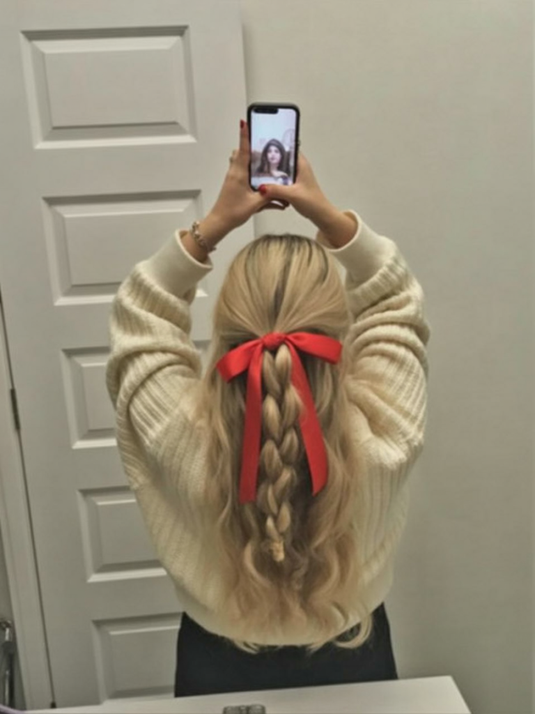 This smooth braid that is crowned with deco holiday red ribbons is nothing but thanksgiving gift to your look. It’s festive without being over-the-top, structured yet playful, and gives off just enough glam to turn heads without stealing the whole show.