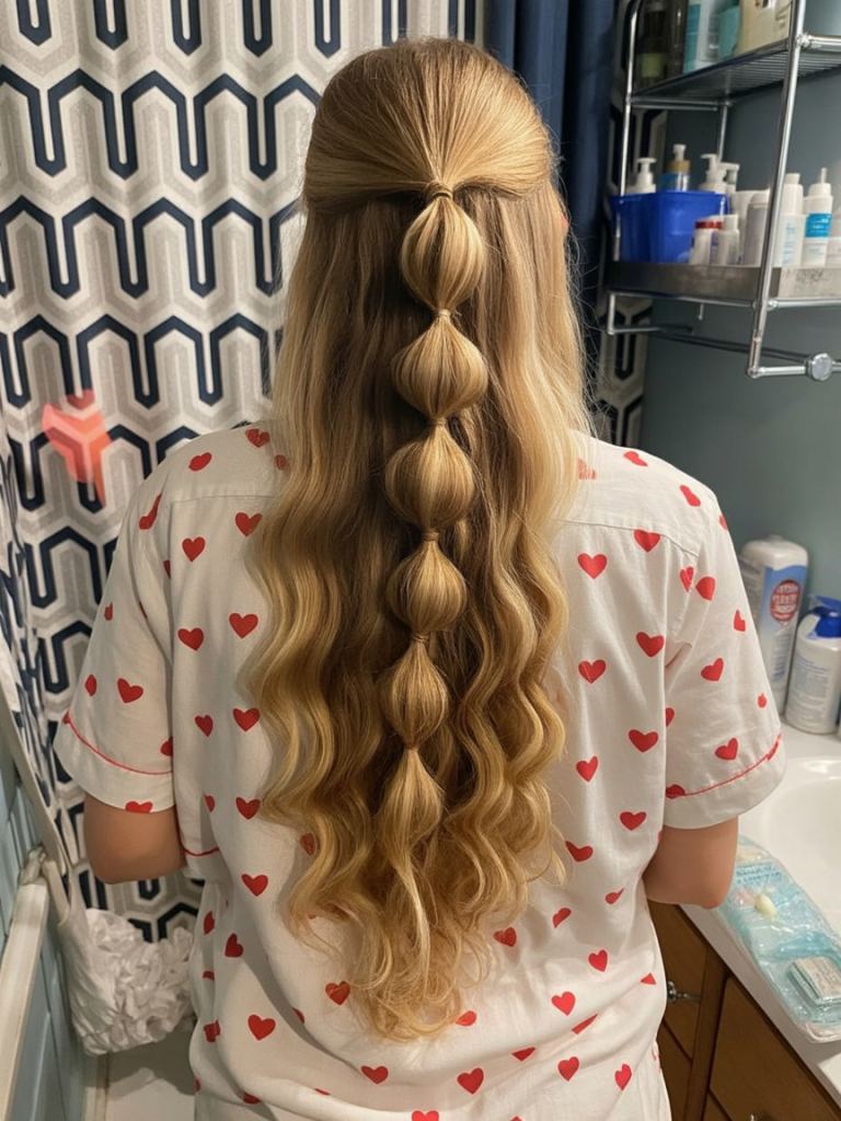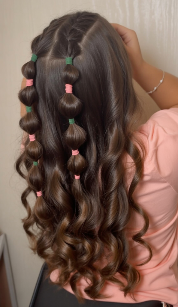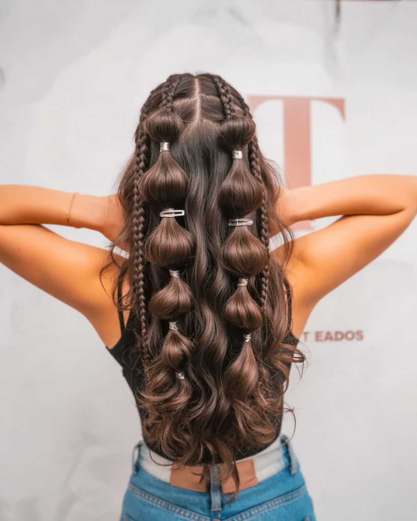 This style is best suited on long hair and it looks so good either on naturally wavy or curled hair. Construct the bubble parts once again by using clear or silver hair ties and pull back to fluff them up. In case you are willing to look a little more current, but like a party, this is one of the most impressive ideas regarding 2025 events.