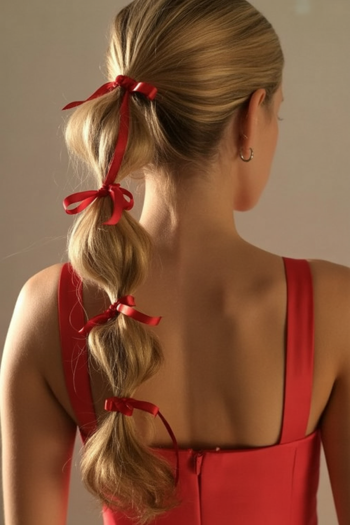 17. Red Ribbon Bubble Braid for a Holiday Statement
