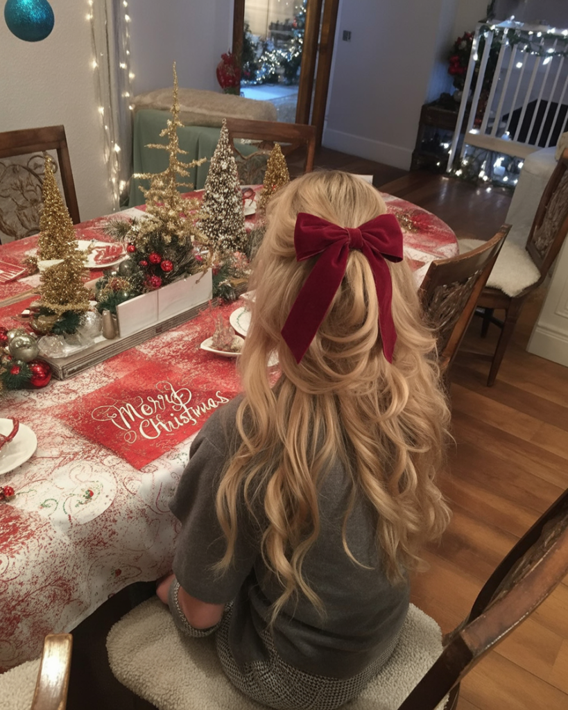 21. Cascading Curls with a Velvet Bow