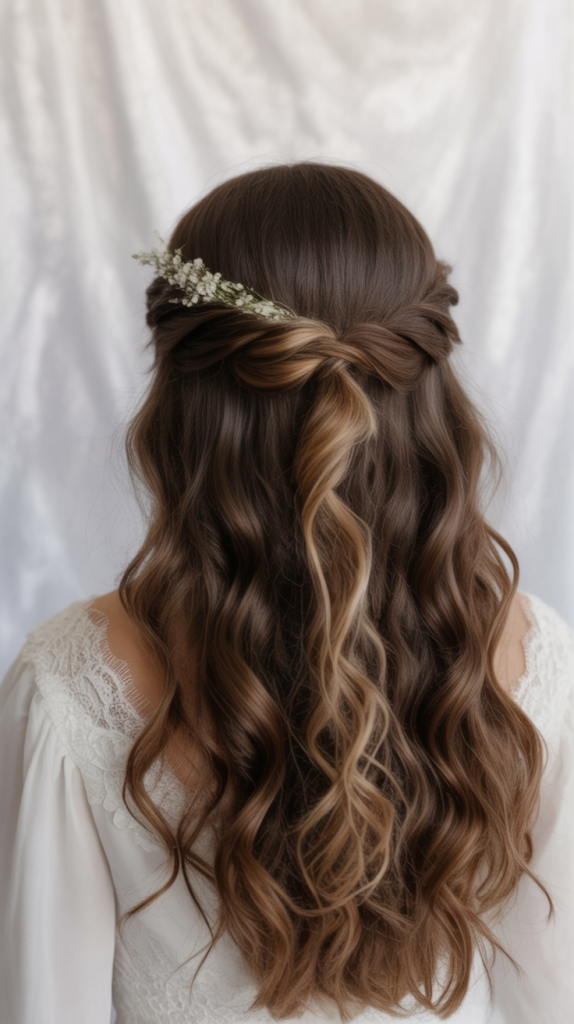 22. Twisted Half-Up with Natural Floral Charm