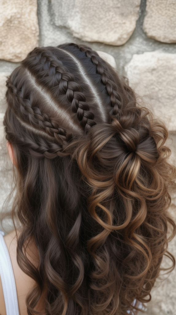 24. Braided Crown and Curls with Intricate Detail