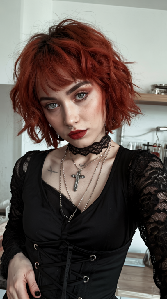 These sharp-looking shag scream modern vampire chic the hair style that exists in a book of gothic fiction rewritten in 2025. The shaggy fringe and ragged edges scream; Don t mess with me, but the blonde-red color makes it gentle with a brush of its hot lusciousness. It is the final short hair style that is edgy and at the same time elegant.