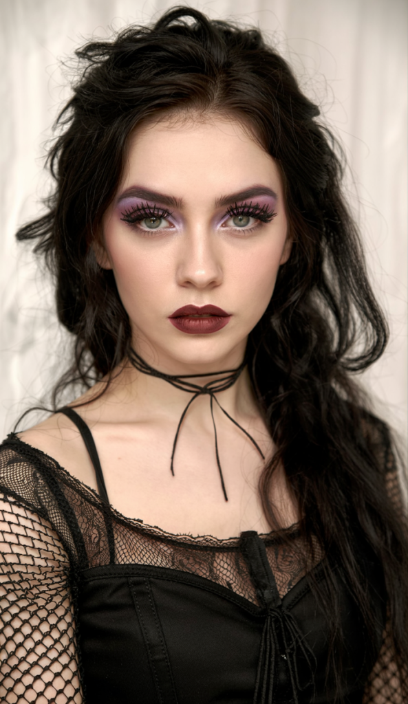 This hairdo is a midnight spell on the move – dark, sexy, and without any doubts, this is gothic. Sizeable at the texture, fuller, and the black waves crashing down like smoke on velvet. It is a look that is romantic yet there is that edge that says danger. Throw in that dramatic make up and the entire aspect screams classical vampire grace.