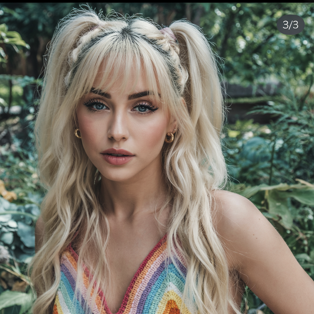 8. Blonde Twin Ponytails with Braids and Bangs