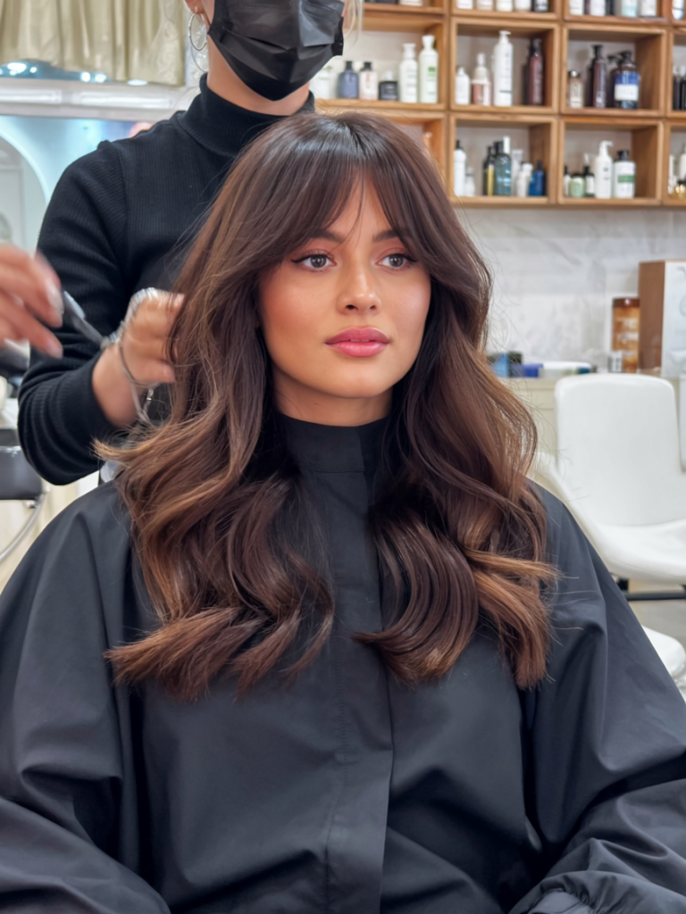 There is nothing sophisticated like a long length haircut with voluminous and face framing layers and a well-blended curtain bangs. The sheen of the waves provides dynamism and depth that makes the hair appear healthy and lavish. It is a style that is both glamorous yet wearable: an excellent combination to make an entrance without screaming your name across the room.