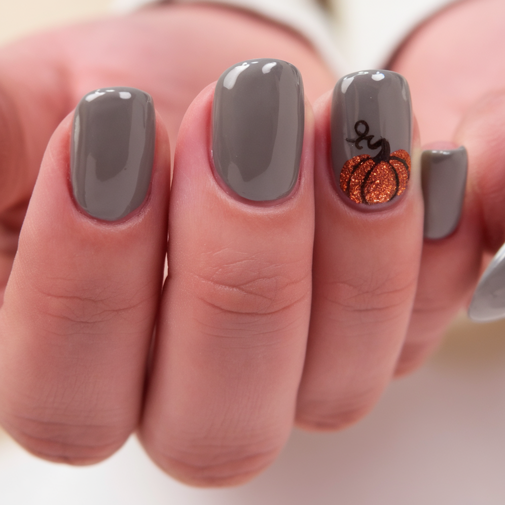 14. Sleek Gray with Glitter Pumpkin Pop