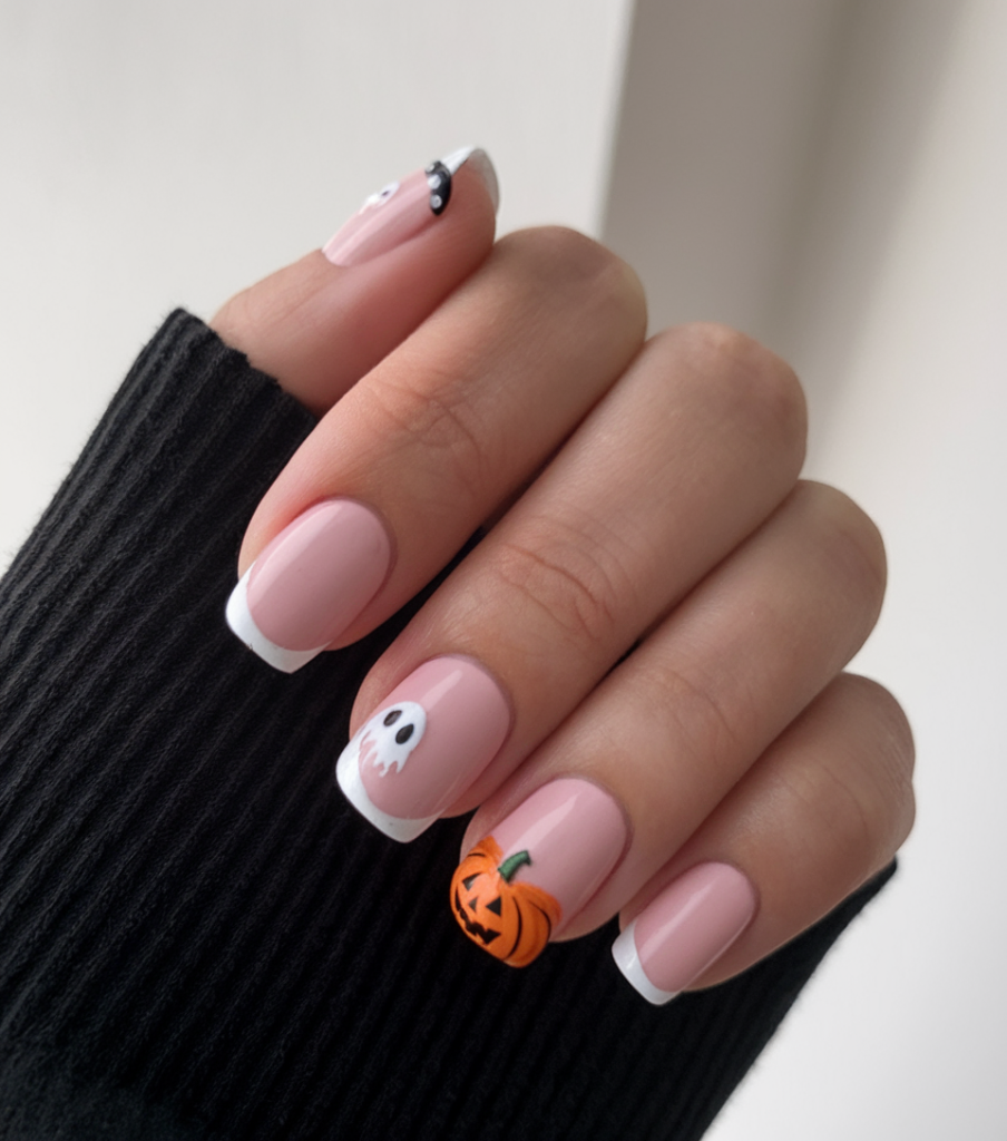 17. French Tips with Pumpkin Charm