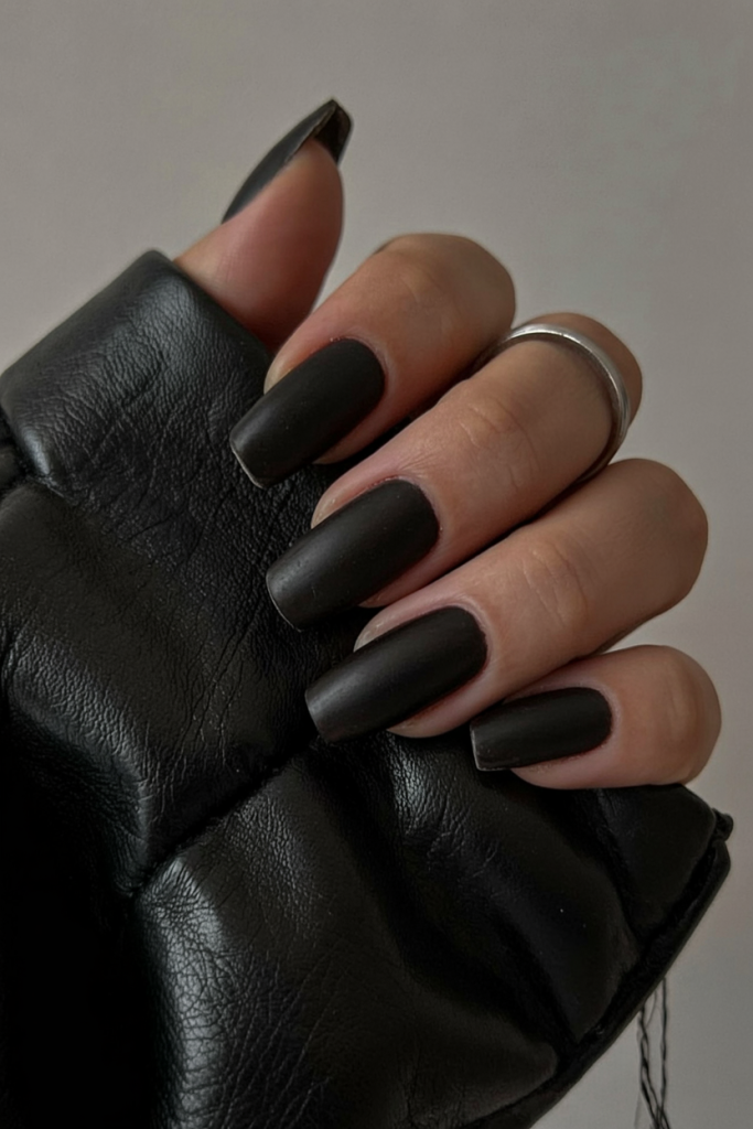 There is some silent command legenbard about these matte black square nails. They do not preach but tell it with authority- the good stiff jacket you love and the classy pair of stilettos. Its smooth finish looks very modern, but also very effortlessly stylish, a needed item when the crispy fall-mornings air makes you want to exclude the pantomime of trying too hard and still have your appearance shout, I have it under control!