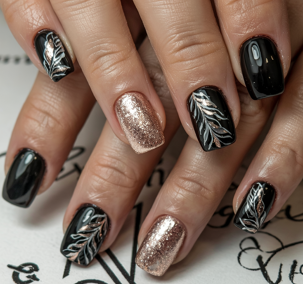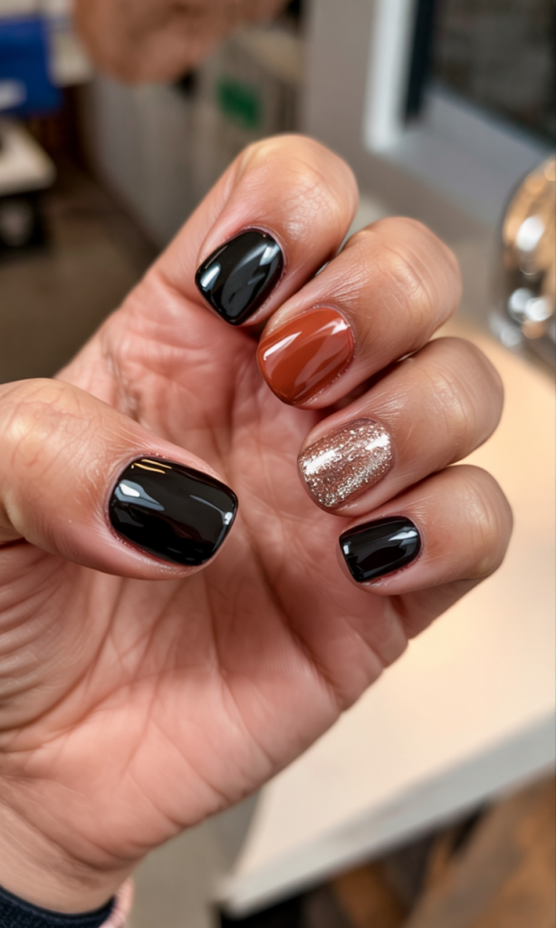 12. Autumn-Inspired Black, Bronze & Glitter Mix