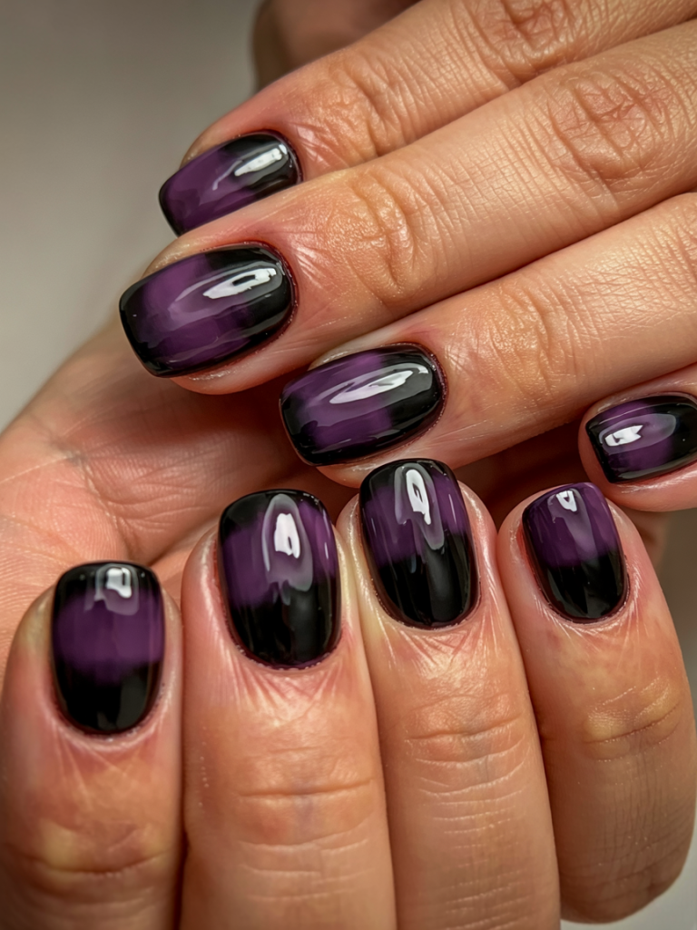 This purple and black omgre are ideal on short-medium nail length and they look particularly gorgeous on designs square shapes. When you are fond of the bright color but still do not want to wear something too fancy in fall 2025 they all look here.