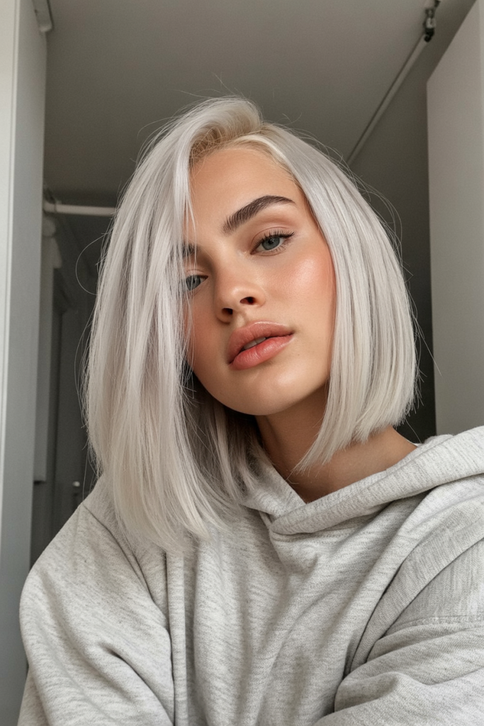 There is something irresistibly strong about a sleek platinum bob. The crisp lines and cold colors emit sophistication while maintaining a sharp-edged modernity to the overall style. This haircut possesses a cool confidence that is both timeless as well as trendy enough without overdoing it, perfect for you if you desire to rock a hairstyle that makes a statement without exerting so hard.