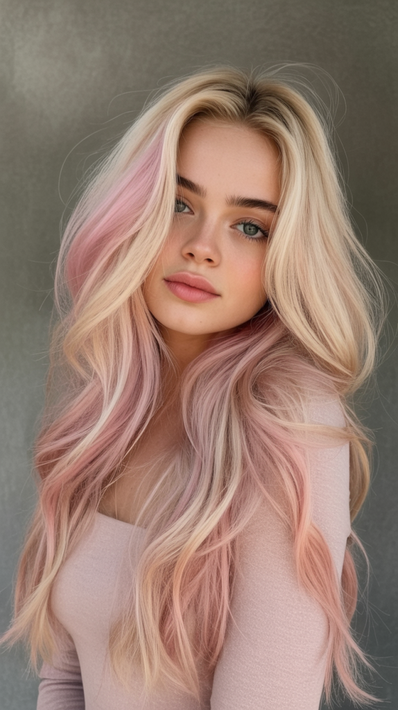 Blonde hair with pink highlights is pure fun — it’s playful, youthful, and makes a stylish statement. The mix of light blonde and pastel pink creates a dreamy effect that feels modern yet feminine. It’s the kind of look that instantly brightens your mood and turns heads.