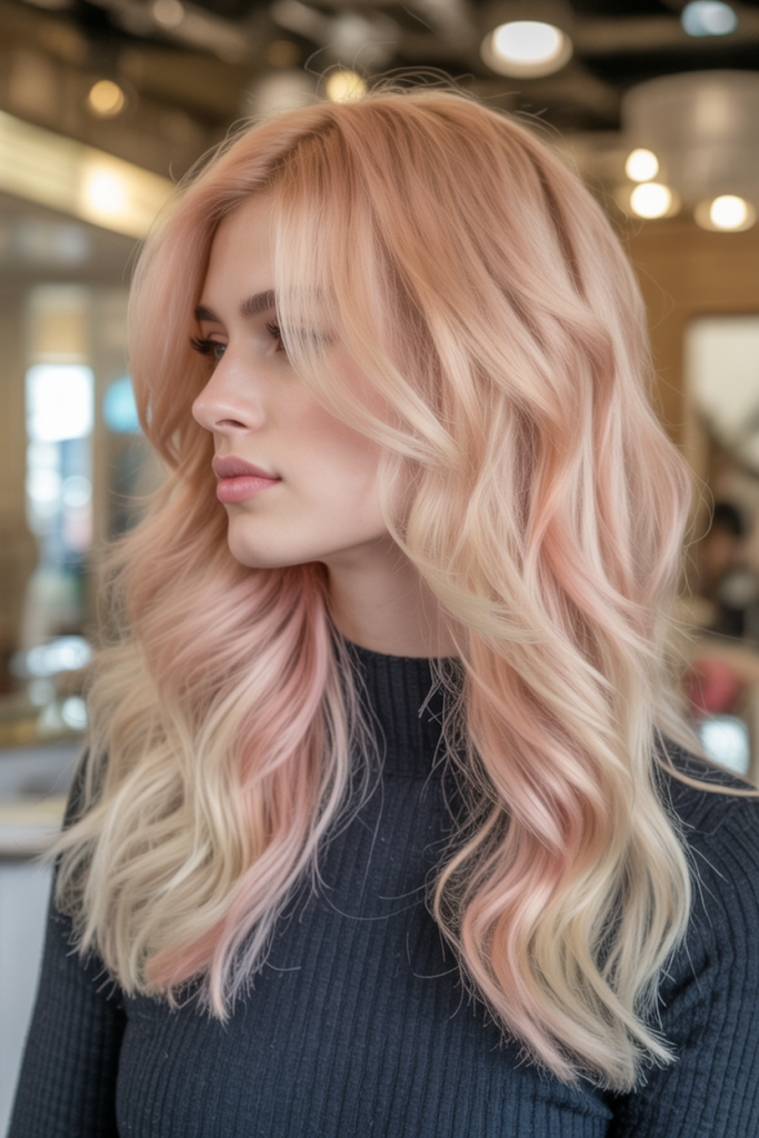 This combination is ideal for those who adore pink foils but desire a more wearable edition for everyday wear. The subtle caramel undertones ground it, while strawberry notes inject fun. It looks particularly dramatic on medium lengths, where layers allow the shade to flow seamlessly. Some wavy styling adds depth that makes it genuine inspo for anyone looking for a change.