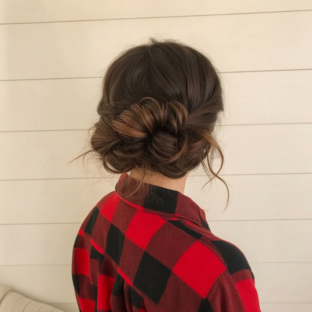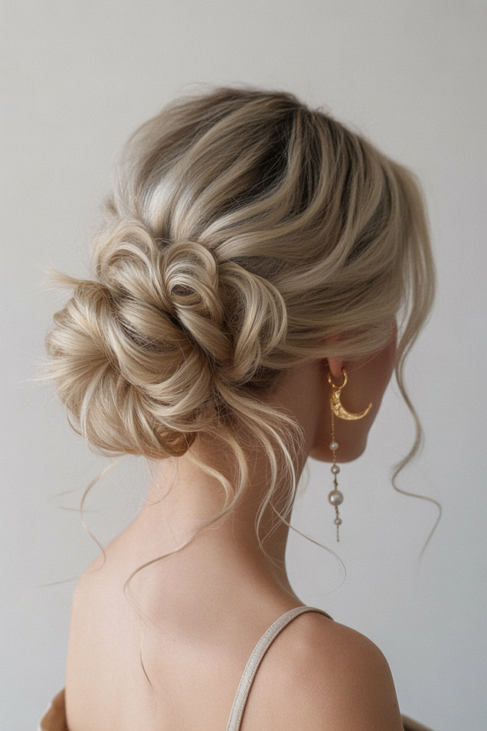 This style is gorgeous with fine or even medium hair that is capable of carrying some curl. First put the style with curling wand to create a bit of texture and then twist loosely into a bun leaving a few strand free so that it would be soft. This is a classic decision which flatter the most face shapes and can be combined with gold earrings or a plain dress to have a classic finale.