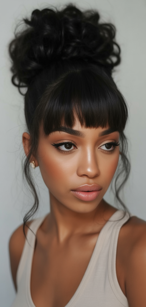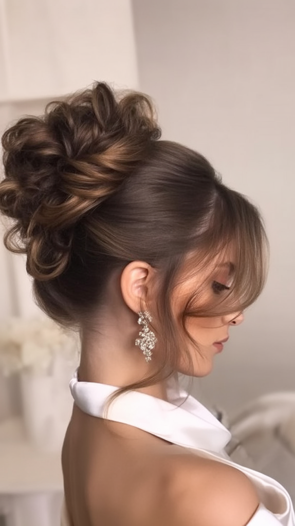 12. Glamorous Formal Bun with Side-Swept Bangs