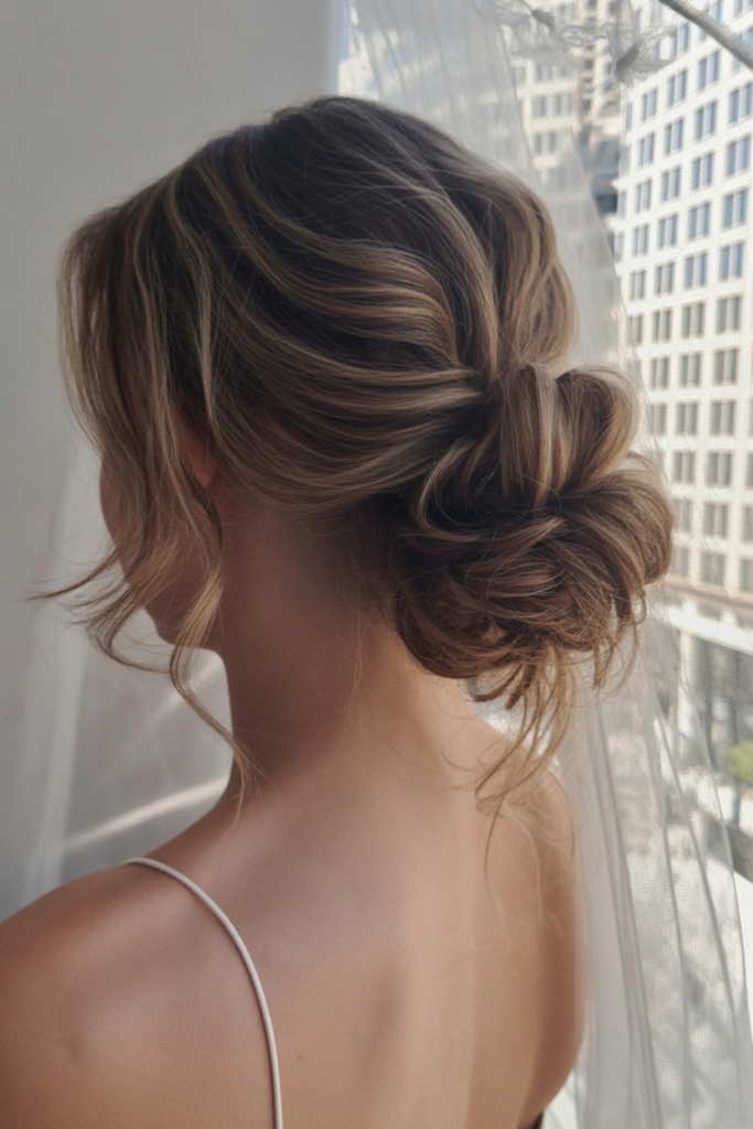 There’s something effortlessly poetic about this romantic low bun. The manner in which the soft loose waves envelop and hide in the bun sets a soft, even sensual mood and is ideal when you want to be stylish but at the same time easy-going. It is a hairstyle that does not preach but breathes elegance hence suitable at weddings and dinner parties, intimate or otherwise. The strands sweeping down the neckset provide that little bit of action that is urban and contemporary.