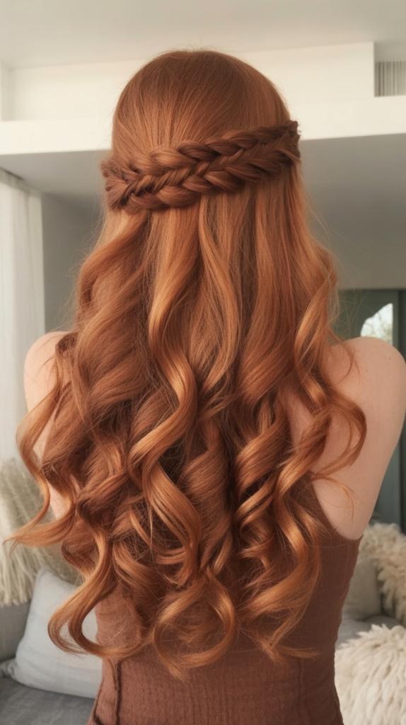 19. Braided Half-Up On Auburn Curls