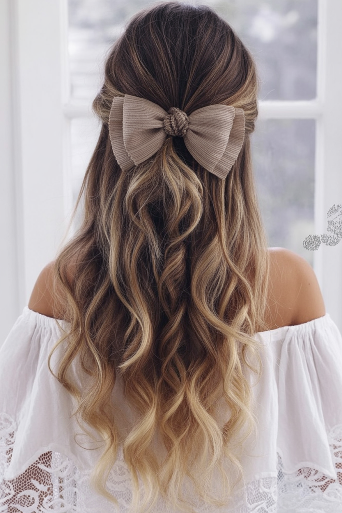 5. Wavy Half-Up with Neutral Bow