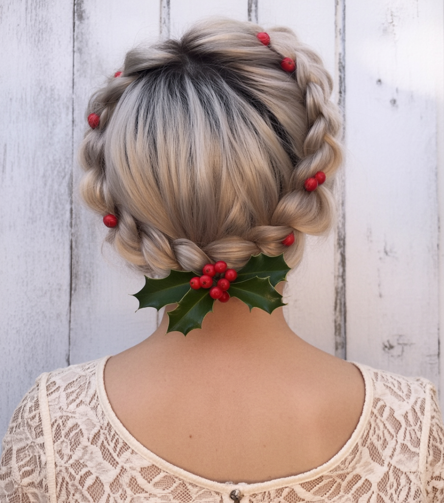 7. Braided Crown With Holly Berries
