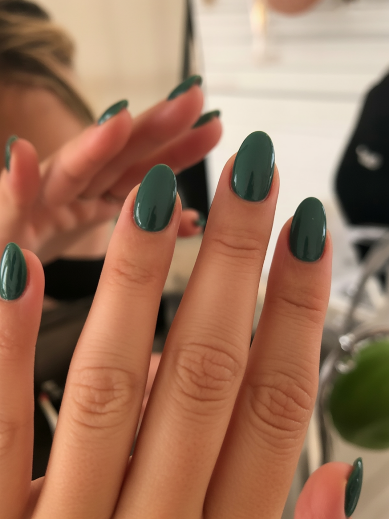 This manicure in dark teal is striking just enough not to be obnoxious and just the thing to get out of the neutral zone. Think jewel tones, fall leaves, and candlelit dinners. It’s moody, a little mysterious, and totally 2025.