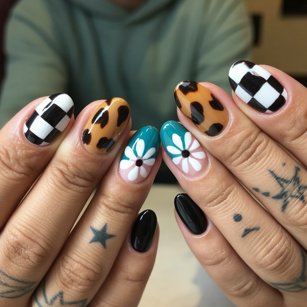 24. Graphic Mix: Florals, Checkerboard, and Leopard