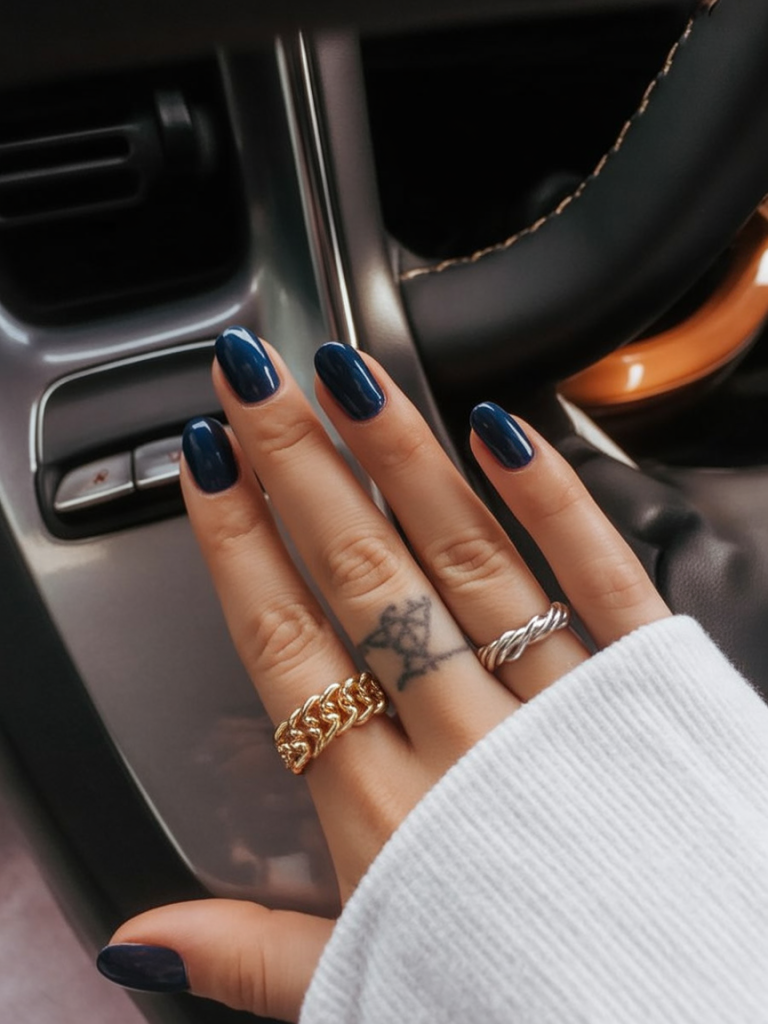 There’s something quietly powerful about deep navy nails. This brief simple style is chic without oxymoronic effortlessness, just like an ideal combination of fall frisky days and multi-level associations. The dark blue color that almost appears black upon seeing it clearly contrasts and blends well in the light.