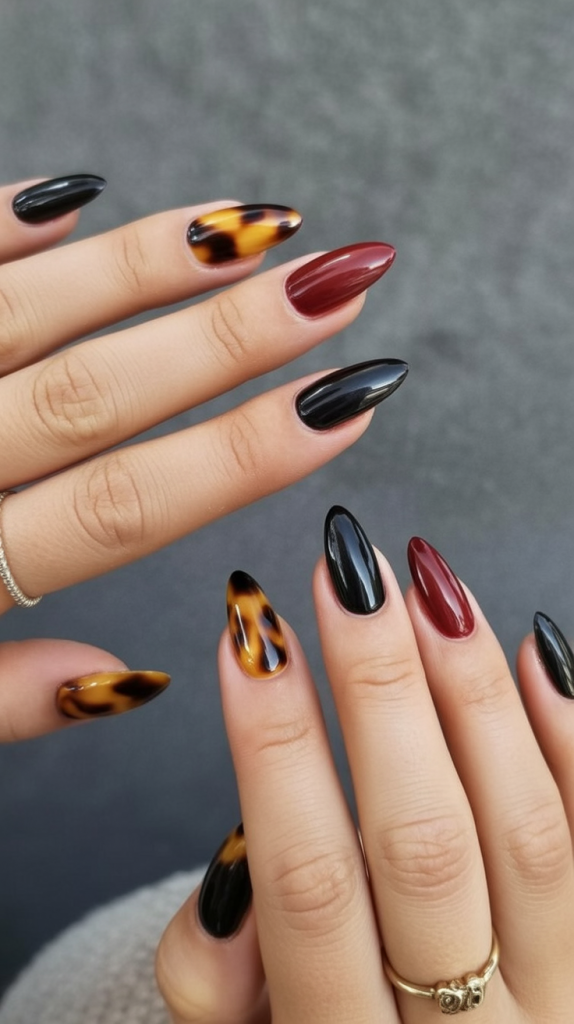 Almond shape is very flattering and lengthens the fingers, and therefore it is a brilliant pick on whoever has a shorter nail bed. The mixture of almond colors and shiny tortoiseshell is highly trending in 2025 as it shows an elegant hint of retro-themed designers but feels modern and new. To achieve optimal results, it is better to use gel in order to maintain the elaborate design, and shine.