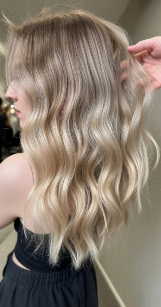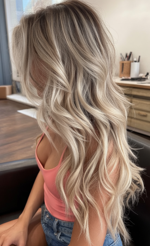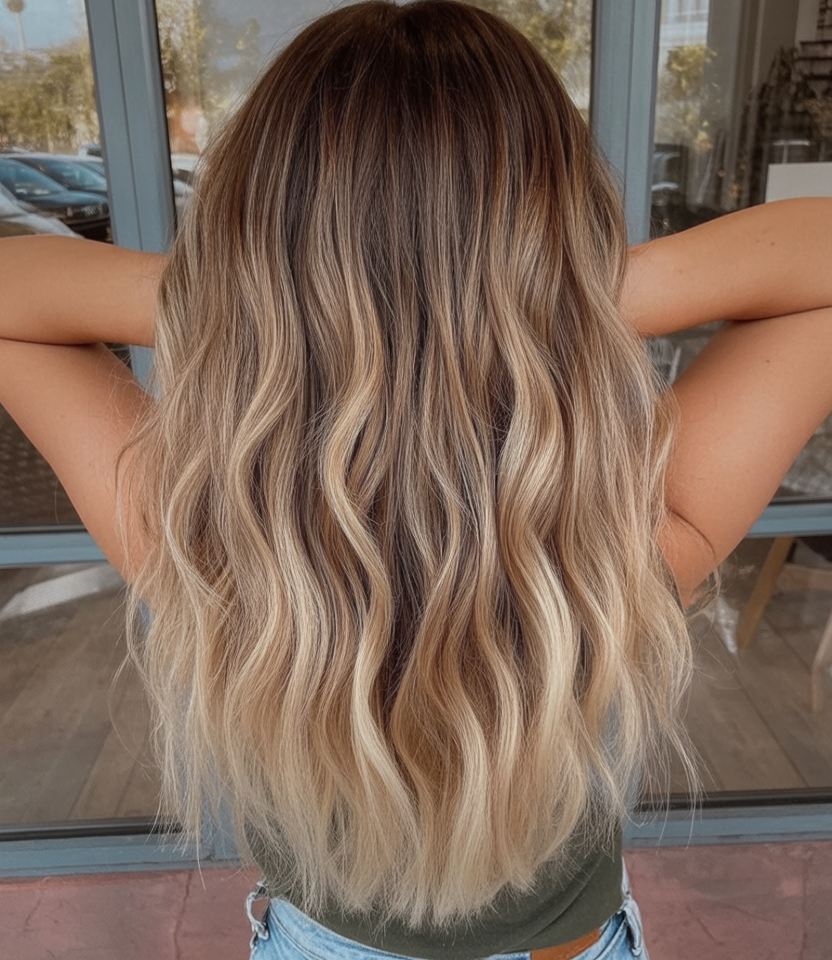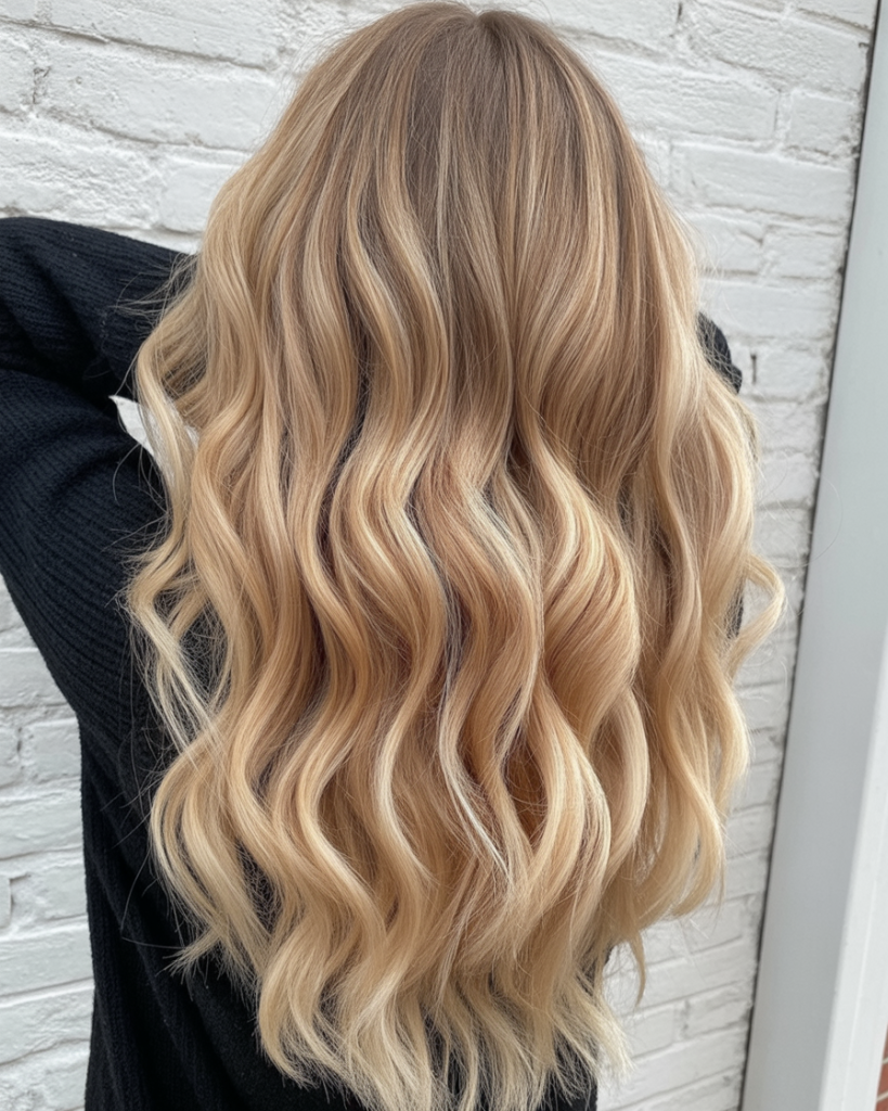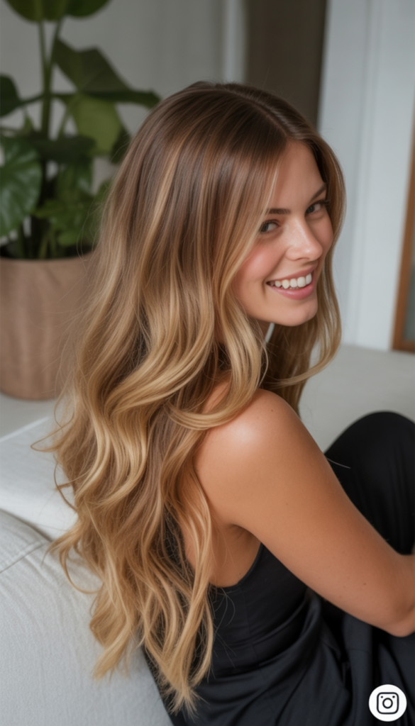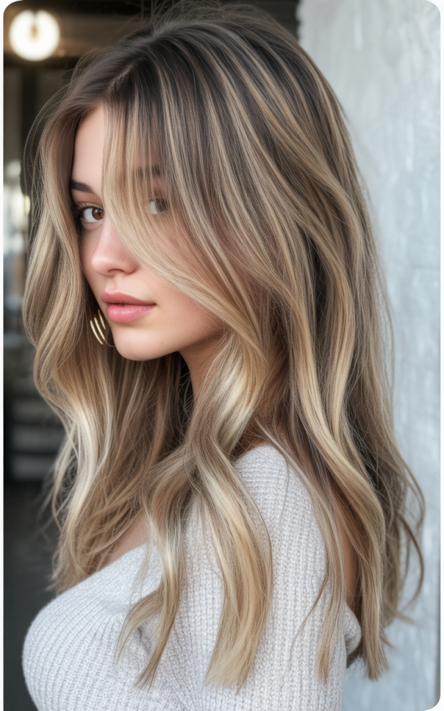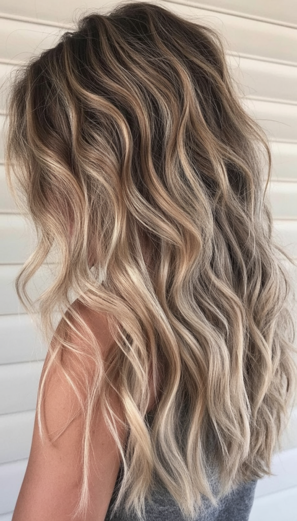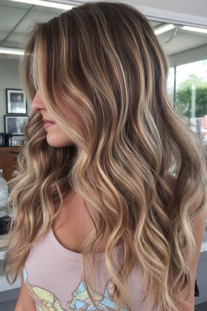 This look favors those women who prefer brighter finish without the lightness in natural dimension due to the full head highlights. It looks particularly good on thick hair or on wavy hair where the highlights serve to create volume and radiance. Created with beachy waves, it is a low-effort hair inspo option in 2025.