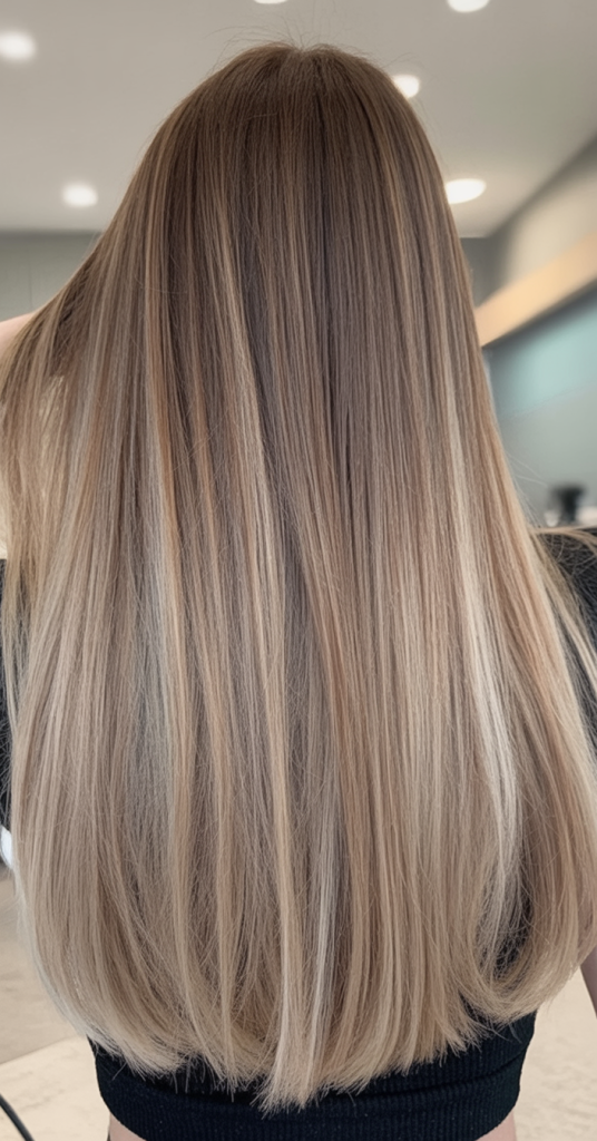 It is a very appealing hair cut especially to ladies with straight or fine hair that desire more depth but do not want to go out with bulky layers in their hair. The ash undertones add some softness to the overall look making it a flawless anticipation of the trends in 2025. Just blow dry straight using a round brush and then spritz hold spray on it to keep it tidy and polished.