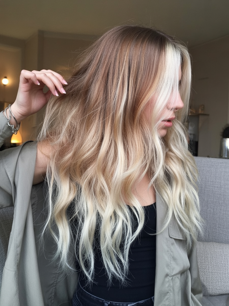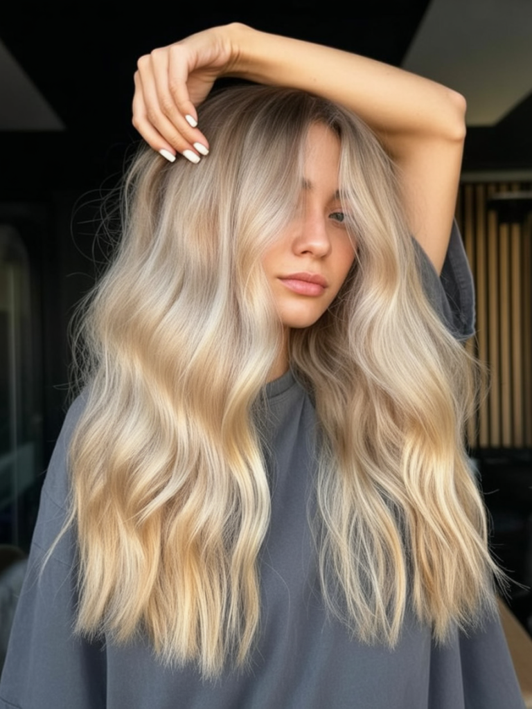 Use the phenomenon to the full with this look being the best on those women who are willing to appear fully highlighted with a lot of contrast. The grayish base mutes the regrowth and the bright blonde provides that pop! Amplify with soft curls and create a natural balancing effect, or keep it straight and polished – it is an elegant 2025 trend.