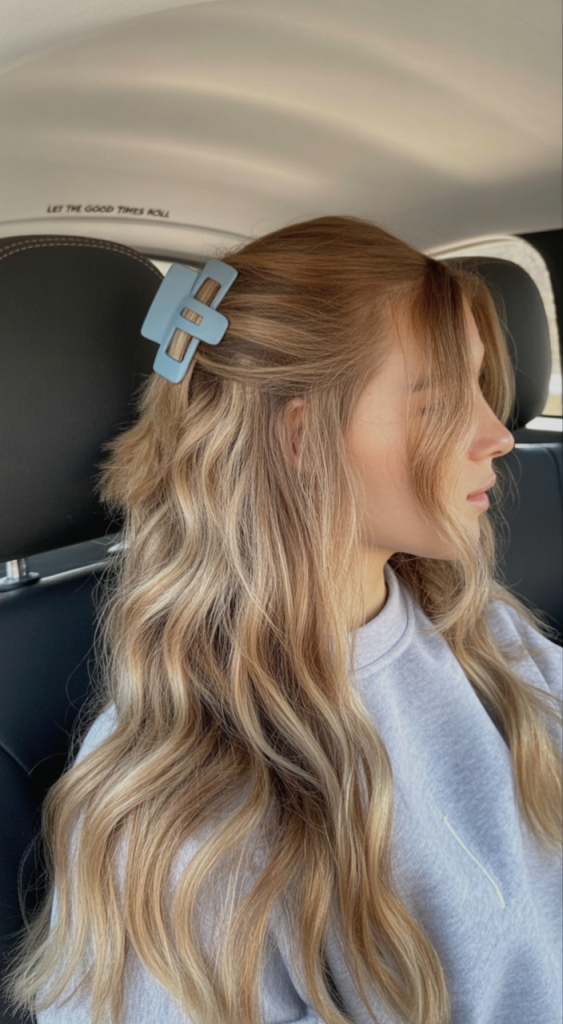 It is a perfect style of women who prefer fast and easy inspiration without making efforts. In 2025, the claw clip trend is reappearing, but then, pairing it with blonde highlights or baby lights makes it even more trendy. It is a fuss-free hack at having a polished outfit, even when you have a busy day.