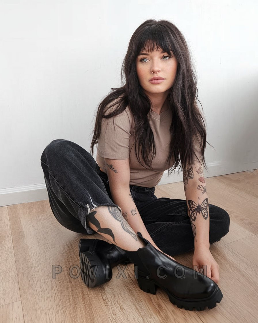 Who says goth has to be head-to-toe black? This outfit plays with subtle contrasts by mixing a soft brown tee with distressed black jeans and platform boots. The result? A grounded, soft look that doesn’t lose its dark appeal. It’s a perfect example of how a girl can soften her edge without losing the goth identity. Great for summer days indoors or relaxing with friends over coffee.